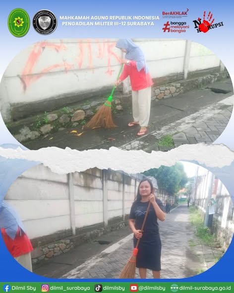 06/11/2025 - In Berita By Dilmil III-12 Admin 2 Comment off Kurve Bersama Seluruh personil Pengadilan Militer III-12 Surabaya melaksanakan korve rutin setiap hari Kamis setelah apel pagi.Kegiatan korve dilakukan dengan pembersihan samping gedung kantor.Kegiatan ini bertujuan untuk menciptakan lingkungan kantor yang bersih, indah dan rapi agar suasana kerja menjadi kondusif.#dilmil #dilmilsby #dilmilsurabaya #pengadilan #Peradilan #pengadilanmiliter #pengadilanmilitersurabaya #berakhlak #ASNBerAKHLAK #BanggaMelayaniBangsa #ReformasiBirokrasi #WBKWBBM #kemenPANRB #mahkamahagungRI #zonaintegritas #wilayahbebaskorupsi #wbk Previous Pembahasan Pelaksanaan dan Tata Tertib Upacara Bendera Next Persiapan Musyawarah Nasional XXI IKAHI Tahun 2025