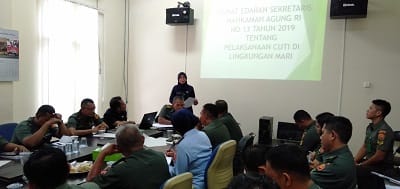 Sidoarjo, Hari Rabu tanggal 08 Januari 2020 bertempat di Ruang Rapat Pengadilan Militer III-12 Surabaya dilaksanakan Paparan Dipa 2020, Sosialisasi pelaksanaan cuti bagi pegawai dan penandatanganan Fakta Intergritas 2020, Kepala Pengadilan Militer III-12 Surabaya Kolonel Laut (KH) Asep Ridwan Hasyim, S.H.,M.Si.,M.H membukan paparan tersebut, paparan Dipa 2020 disampaikan oleh Sekretaris Dilmil III-12 Surabaya, Sosialisasi Pelaksanaan Cuti pegawai disampaikan oleh Kasubbag Kepegawaian dan Ortala, paparan dihadiri oleh seluruh hakim militer dan seluruh anggota Dilmil III-12 Surabaya.