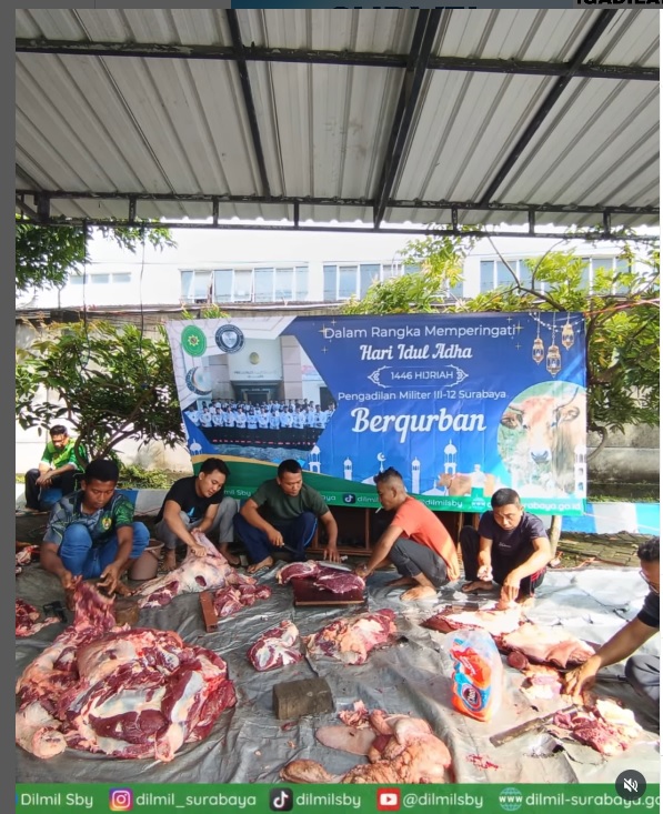 Pada hari Senin tanggal 9 Juni 2025, bertempat di halaman belakang kantor Pengadilan Militer III-12 Surabaya, Personel Pengadilan Militer III-12 Surabaya melaksanakan penyembelihan hewan kurban dalam rangka memperingati hari raya Iduladha 1446 H.