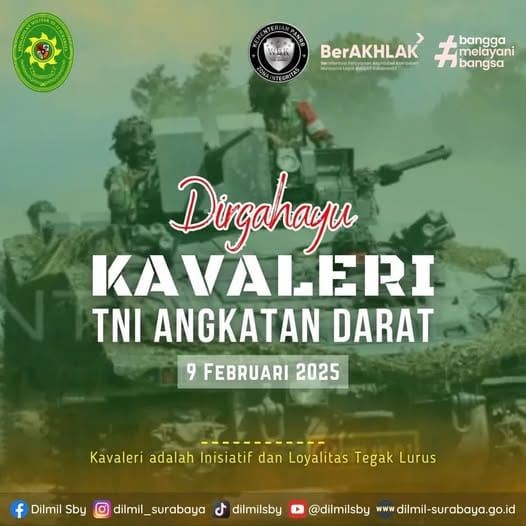 Tahun ini menandai peringatan Hari Kavaleri ke-75, sebuah perjalanan panjang yang penuh dengan dedikasi dan pengorbanan. Kavaleri adalah simbol inisiatif dan loyalitas yang tegak lurus, selalu siap melaju ke depan dengan keberanian dan dedikasi tanpa batas. Terima kasih kepada para pejuang Kavaleri yang terus menjaga kedaulatan dan kehormatan bangsa.